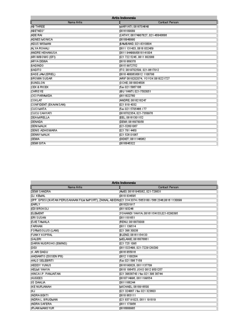 Daftar lengkap pin bb & no. 877 likes · 1 talking about this. 939 0001 indra 0811 962 378 7. Tujuh artis yang masuk nominasi adalah raisa citra kirana maudy ayunda cinta laura chelsea islan agnez mo dan natasha wilona. Kumpulan nomor hp artis indonesia. Kontak personal & managemen artis di indonesia daftar contact person artis indonesia a 1. Karena popularitasnya yang semakin meroket tak heran kalau alwi assegaf diterpilih sebagai artis cilik tersilet di ajang silet awards 2017. Agnes monica 0816 166 7302 3. Kampoeng nomor hp artis indonesia reall. Disini tempat jual barter nomer artis. (asosiai manager artis indonesia) : Artis termahal kelahiran jakarta, 29 juni 1994 ini memulai karir di dunia hiburan sejak usianya masih kecil yaitu 6 tahun. Untuk order database, silahkan hubungi admin via menu kontak admin.