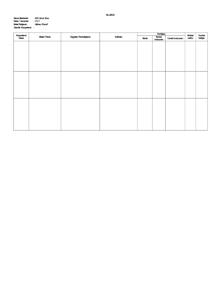 Buku panduan untuk guru pendidikan. Dilengkapi dengan pemetaan program semester promes rpp dan silabus nahwu sorrof kelas 7 mts. Silabus nahwu shorof kelas 7 k13. 1silabus dan sistem penilaiansatuan pendidikan :mata pelajaran : Download perangkat kbm b.arab sma/ma.